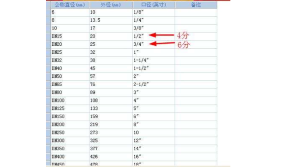 工程管径对照表换算公式: 1 英寸=25.4毫米 =8英分